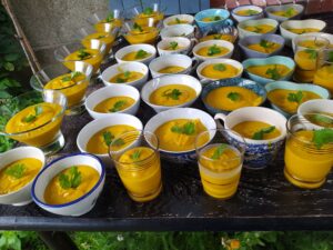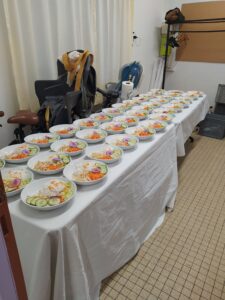 A partir de 15 personnes et jusqu’à 150 couverts, dans un rayon de 20 Kms autour de Nantes. Possibilité de formules avec plusieurs entrées apéritives, ou entrées avec un plat (adaptation des plats pour les végétariens et végans). Plusieurs options possibles de mise en place et de service :